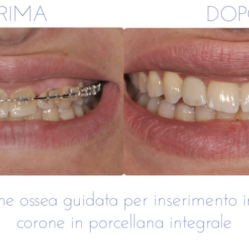 In casi selezionati è possibile anche eseguire l’intera ricostruzione in poche ore. Questa tecnologia state-of- the-art impiega una tecnica di chirurgia virtuale sulla base di dati di scansione provenienti da una TAC di ultima generazione. Questi dati vengono utilizzati per creare delle guide chirurgiche con una prototipazione 3D rapida. Queste dime vengono utilizzati per guidare gli impianti durante il posizionamento in modo rapido e preciso a tal punto da non richiedere di alzare un lembo. Elementi dentari prefabbricati possono essere inseriti sugli stessi impianti immediatamente. L’intera procedura di solito dura meno di un’ora: si tratta di una procedura chirurgica minimamente invasiva e senza suture, i pazienti mostrano molto poco gonfiore e disagio, ed apprezzano la funzione e l’estetica dal momento in cui gli impianti sono inseriti.